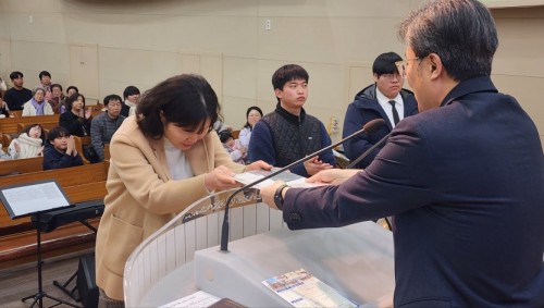 수료식(모범교사/노회 모범교사/초등부 모범어린이) 페이지 정보 작성자 제5영도교회 작성일 26-01-05 22:01 조회 39회 댓글 0건 본문 수료식(모범교사/노회 모범교사/초등부 모범어린이/서리집사은퇴) 이전글수료식(유치부, 초등부, 중등부) 다음글연말 시상(성경다독, 전도상, 구역장상, 수요전도대 출석상) 목록 댓글목록 0 댓글목록 등록된 댓글이 없습니다.