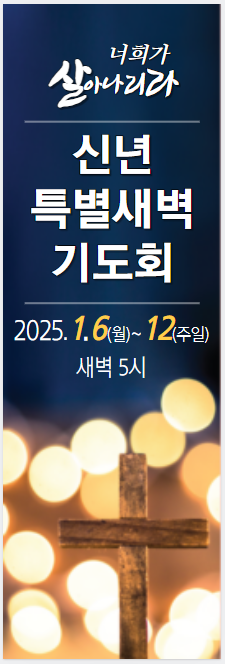 2025년 신년특별새벽기도회 페이지 정보 작성자 제5영도교회 작성일 25-01-25 11:39 조회 224회 댓글 0건 본문 2025년 신년특별새벽기도회 이전글2025년 중직자 세미나 다음글성탄축하행사 목록 댓글목록 0 댓글목록 등록된 댓글이 없습니다.